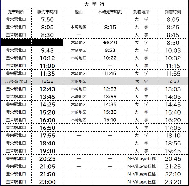 - 大学バスロータリーおよび豊栄駅北口前ロータリーでの斜め横断はしないように、ご注意ください。