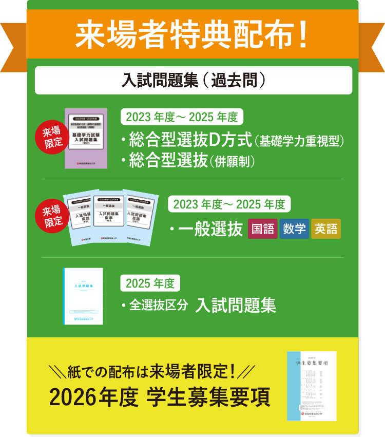①総合型選抜D方式・併願制の受験をお考えの方 ②一般選抜・特待生選抜試験の受験をお考えの方