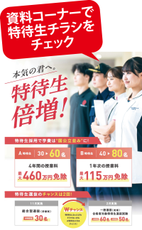 メリット豊富な併願制入試を解説他大学との併願受験が可能な入試制度をわかりやすく解説します。さらに、採用数が倍増となった特待生制度の詳しい内容に加えて、採用目安となる得点率も公開します。