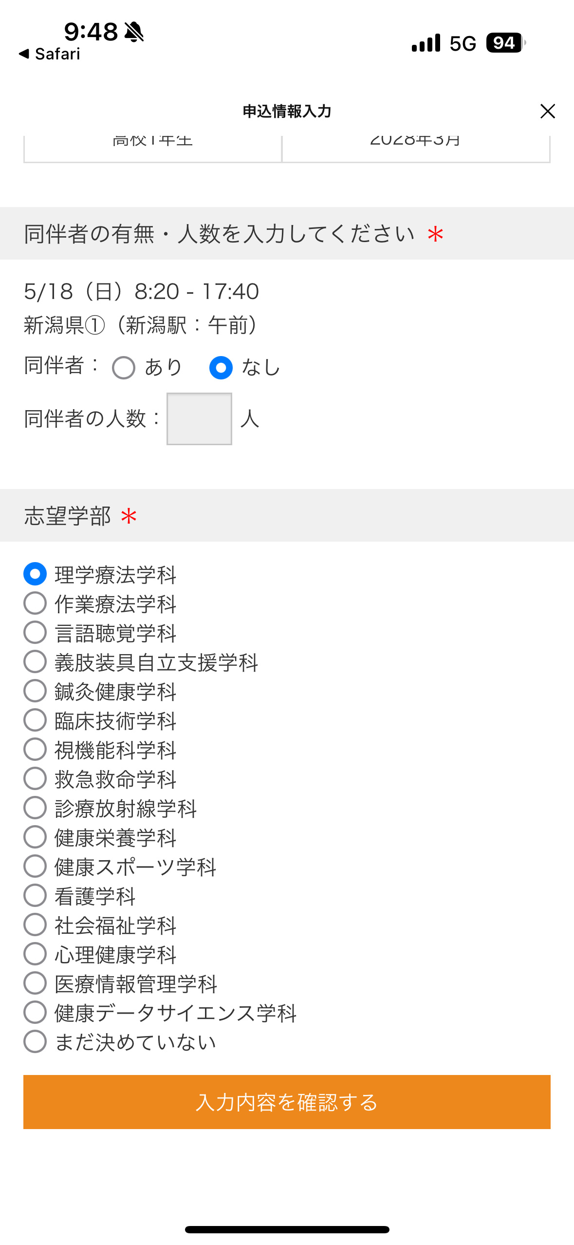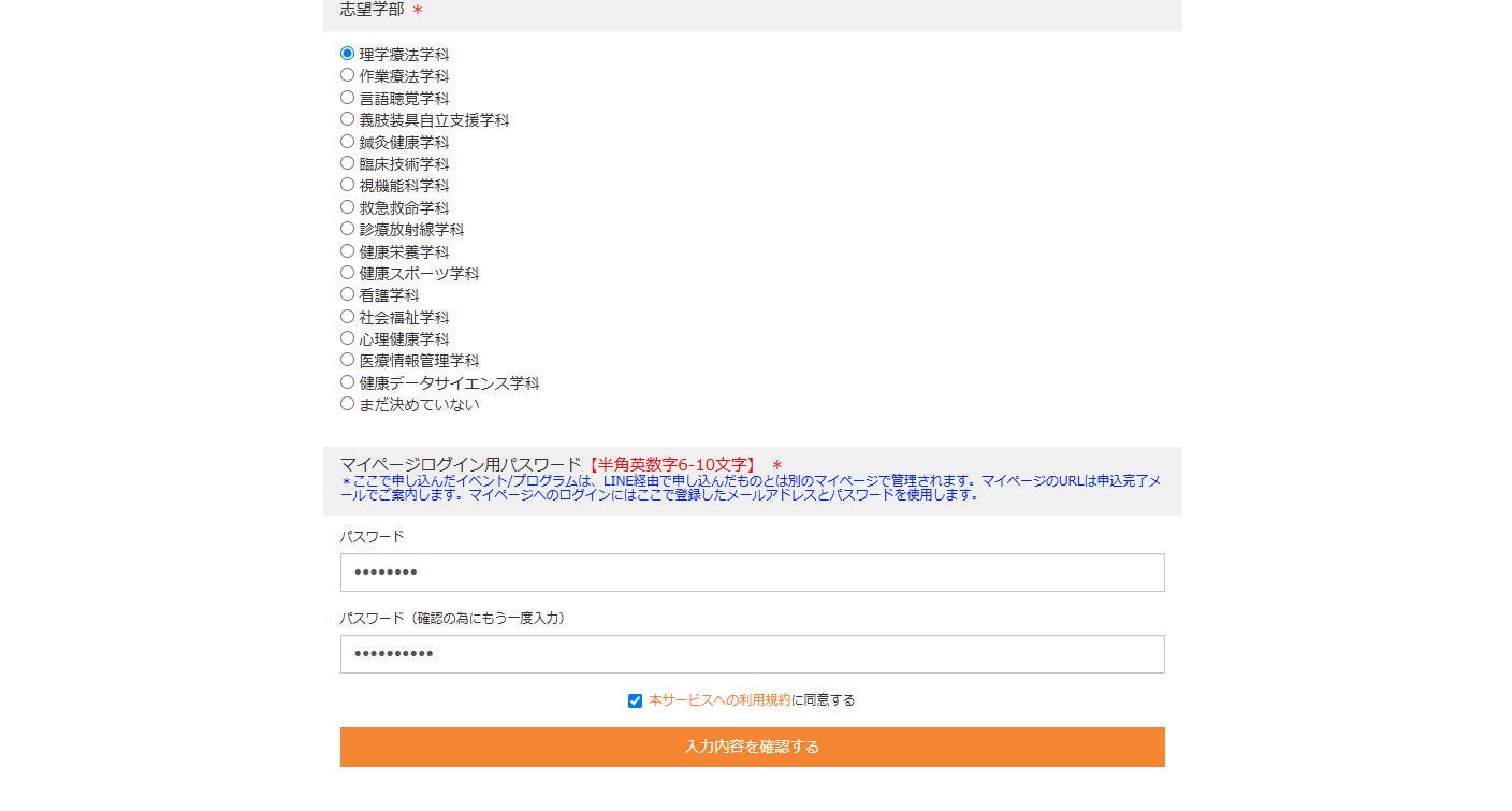 申込情報を入力の上、「入力内容を確認する」をおしてください。