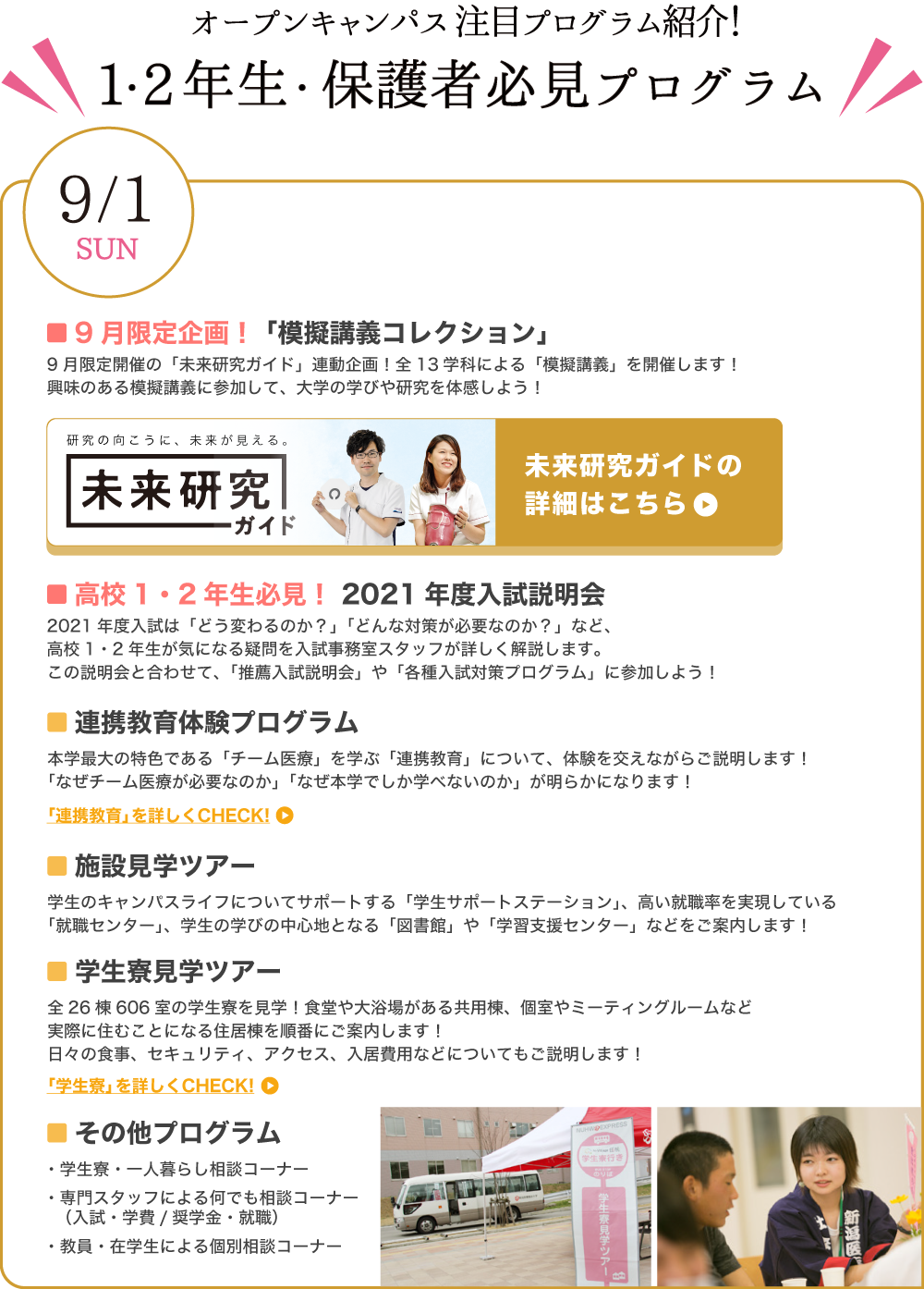 - ・次世代の医療と介護を支える「介護福祉」を学んで見よう! など