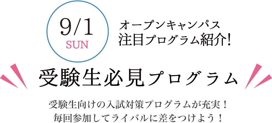 - 9月限定開催の「未来研究ガイド」連動企画!全13学科による「模擬講義」を開催します!興味のある模擬講義に参加して、大学の学びや研究を体感しよう!