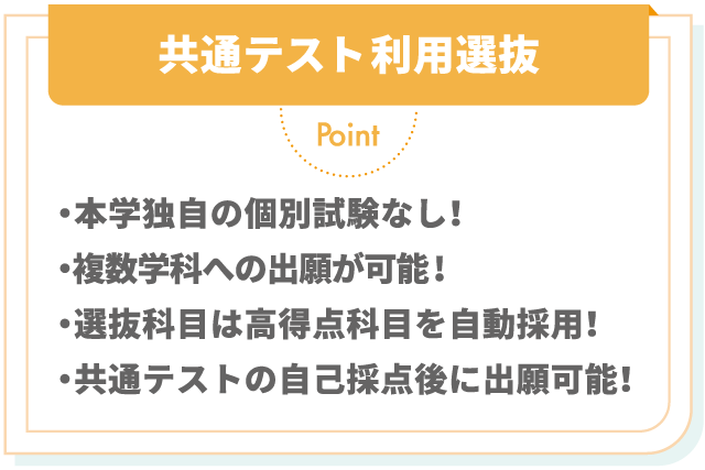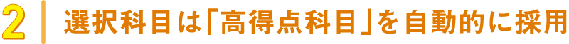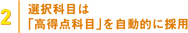 選択科目は、各学科が「選択」に指定している科目の中から受験した高得点の科目を採用し判定します。※地理歴史・公民および理科②は、第一解答科目の得点を採用します。