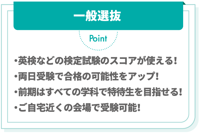 一般選抜において、実用英語技能検定やGTEC等の英語外部検定試験のスコアが得点として活用できます!