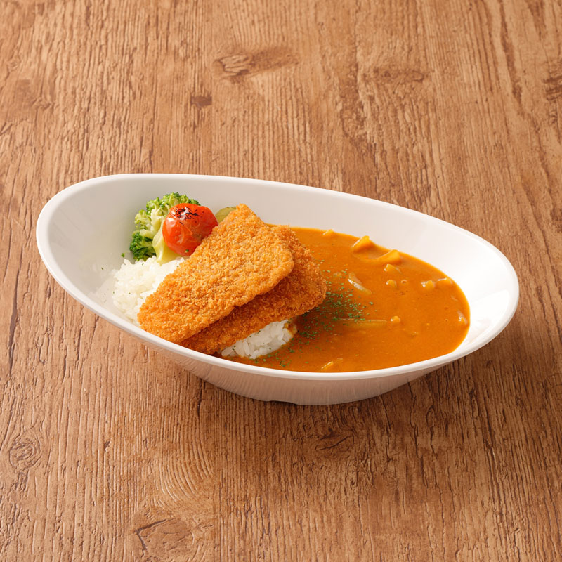 大学のほぼ隣で愛情いっぱい育てているベジ・アビオ様のトマトを使用しています。少しスパイシーなカレーに揚げ物