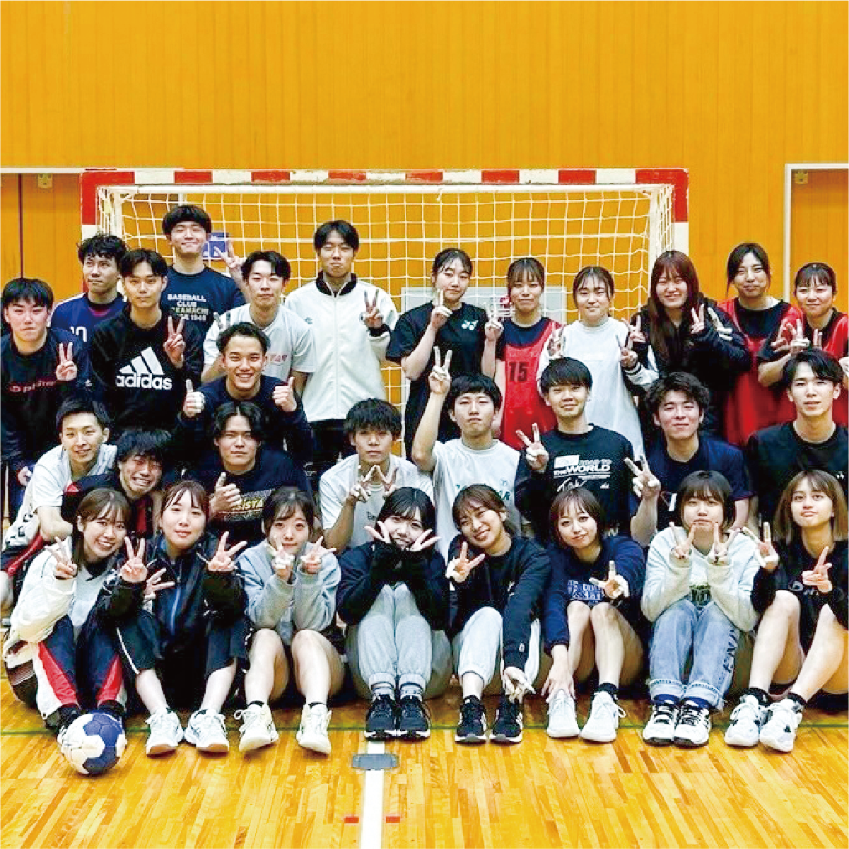 ハンドボールは「走る、投げる、跳ぶ」の三要素が揃ったスポーツでスピード、迫力ある攻防や華麗なシュートが魅力のスポーツです。新潟医療福祉大学ハンドボール部では男女一緒に活動しており、半分以上が初心者です。経験者の方、未経験者の方どちらも大歓迎です!
