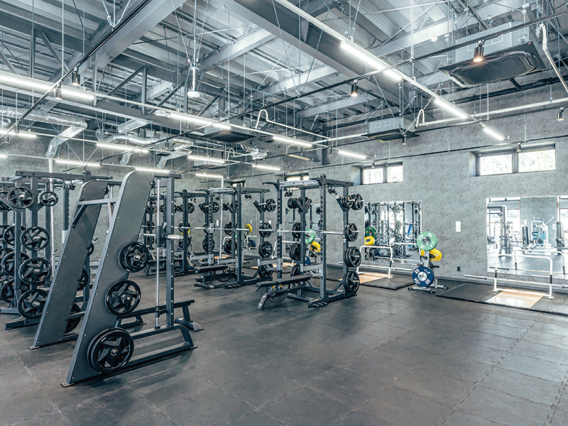フリーウェイトトレーニングエリア、トレーニングマシンエリア、自重トレーニング・ストレッチを行うオープンエリアを備え、スポーツ競技に実用性の高い筋力トレーニングを行うことを目的とした施設となります。