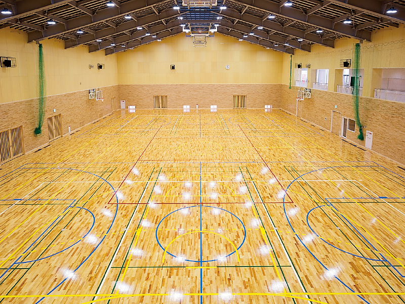 1階にはバスケットボールコートを備え、2階の外周部分には全長147メートルのランニングコースがあります。