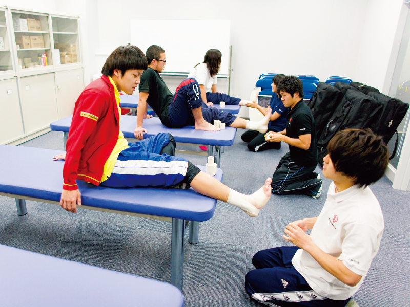 各種物理療法機器やトレーニング機材を配置し、隣接したトレーニングセンターと共に本学の強化指定クラブのアスリートに対するトレーナーサポートの活動拠点となります。