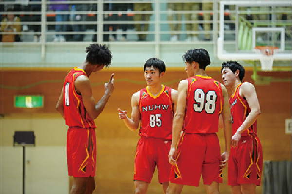 インカレベストを目標にチーム一丸となって果敢に挑戦し続ける集団が男子バスケットボール部です。学業を疎かにすることなく高い志を持ち、目標に向かって努力を惜しまない部員たちが、大好きなバスケットボールにおける個々のスキルアップやチーム力向上を目指して日々、練習を継続しています。試合に出場している選手、ベンチにいる控えの選手、応援する部員、指導者の全員が、「人間力向上なくして、競技力向上なし!」をモットーに、真剣勝負の場に挑みます。その結果、友情や感謝の心、不屈の精神など、単にバスケットボールの上達にとどまらず、人間的にもさまざま成長が培われていきます。