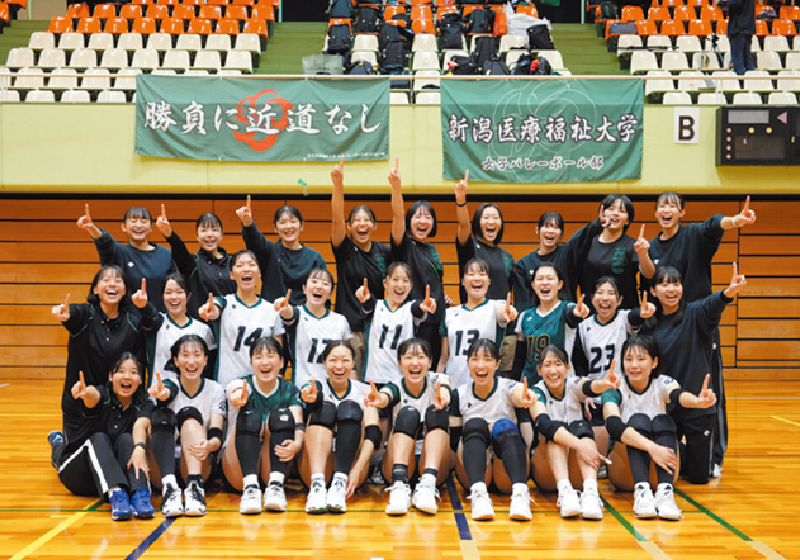 女子バレーボール部は、2013年の創部当初から強化指定クラブとしてスタートしました。以降、北信越大学選手権大会での優勝をはじめ、全日本インカレベスト16進出を果たすなど、数々の成績を残してきました。また、白岩蘭奈選手など卒業後にプロ選手になったOGも多く輩出しています。今後の目標は、全日本インカレで勝ち進んでいけるようなチームづくり。それを念頭に日々のトレーニングに励んでいます。またバレーボールの上達にとどまらず、部活動を通してセカンドキャリアに活かせるように経験を積み、自分の力で未来を切り拓けるような人材育成を目指しているのも大きな特徴です。