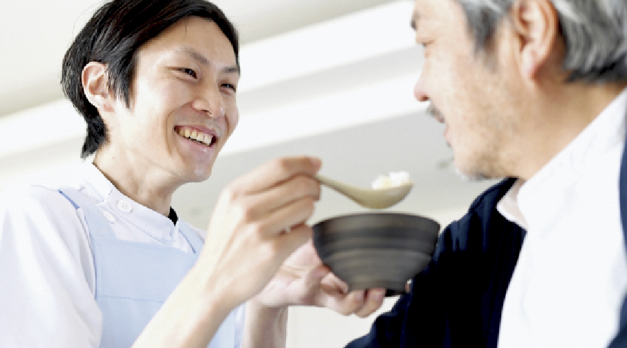 食べ物が口からこぼれる、うまく飲み込めない、むせる、といった摂食嚥下(えんげ)障害に対して、原因の調査をします。その結果から、「 咀嚼して、飲み込む」ために必要な器官の運動訓練や、飲み込む反射を高めるための訓練を行います。
