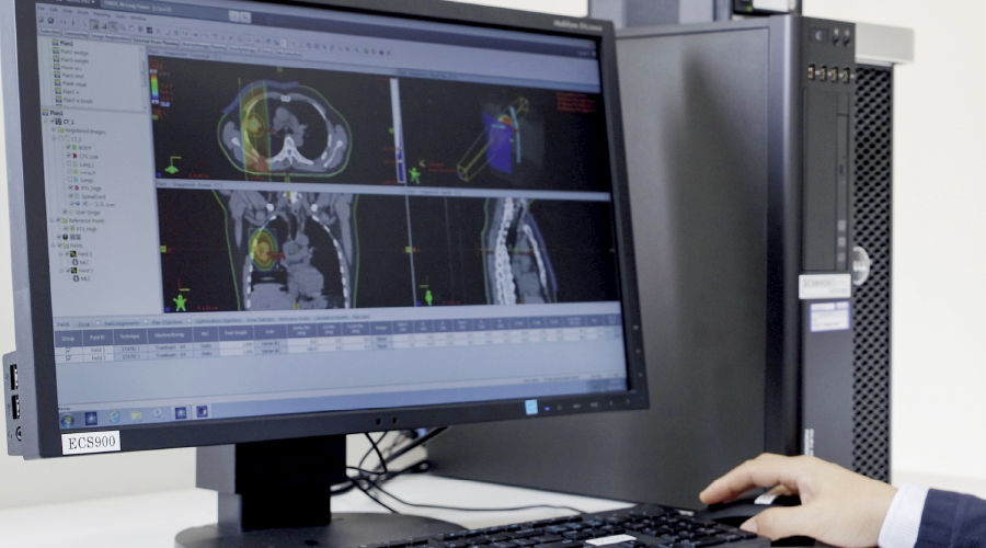 放射線治療は手術、薬物療法と並ぶ、がんの3 大治療法のひとつです。放射線を病巣にあてることにより、腫瘍細胞を死滅させる治療法です。放射線治療では、がんに侵された臓器の機能と形態の温存が可能です。また、全身への影響が少なく、高齢者にも適応できる治療法です。
