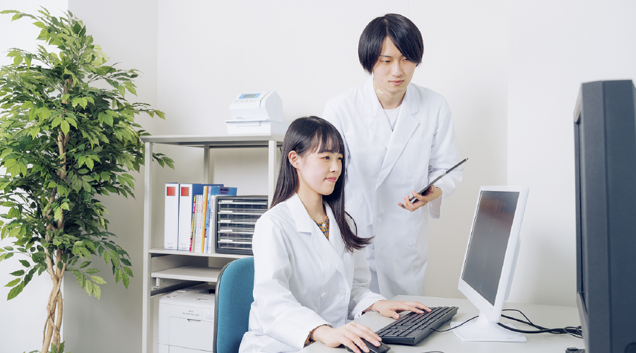 患者様の病状、検査記録、治療経過などが入力されたカルテの情報を専門的に扱い、管理を行います。医師が書いた診療内容のチェックをはじめ、医療スタッフへの情報提供を行います。診療データを分析し、病院経営にも貢献していく専門職です。