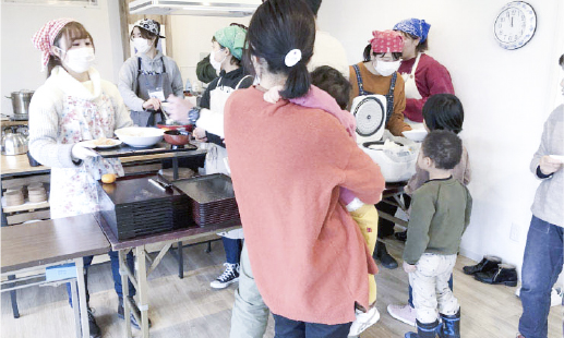 栄養サポート部に所属する学生が主体となり、新潟市北区の地域交流スペース「クロスハーバー」で松浜子ども食堂「はぴまる」を開催しています。この活動は、子どもたちへの温かい食事の提供や地域の居場所づくりを目的として実施しています。学生は、献立作成や調理だけでなく、予算立案や計画立案、現場の準備、広報など、子ども食堂の運営全体について考え実践していきます。また、活動を通して地域の課題と向き合い、その課題に対する提案や行動について考える力を身につけていきます。