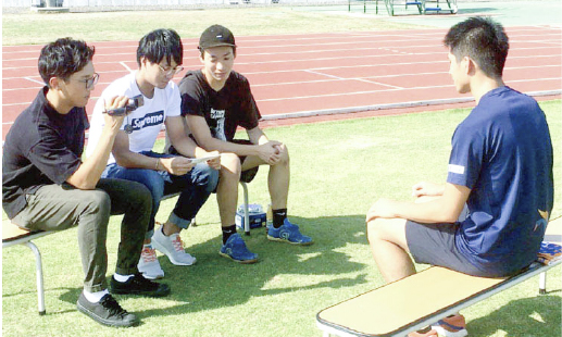 UX新潟テレビ21との共同企画により、健康スポーツ学科の学生が番組制作に携わりました。この番組は、新潟県から世界を目指すアスリートやそれをサポートする人たちを紹介することを目的として企画され、学生が対象者への取材や編集などに関わりながら制作を進めました。この活動を通して学生は、ニュースを社会に伝える難しさを体感することができ、メディアの役割についても学ぶことができました。