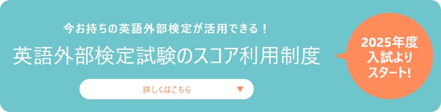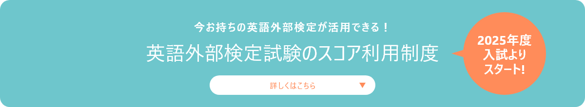 一般選抜(前期/後期)において、英語外部検定試験のスコアを利用する場合、「英語」の科目試験は任意受験とします。また、英語外部検定試験のスコアを利用し、「英語」の科目試験を受験した場合は、英語外部検定試験のスコアから換算した「英語みなし得点」と「英語」の科目試験の得点のうち高得点となる得点を合否判定に採用します。