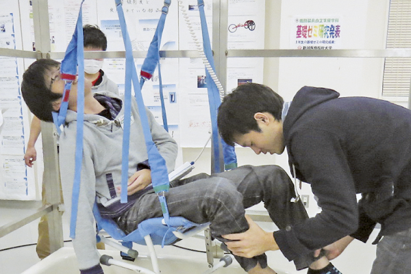 福祉用具を扱う専門職に必要となる実践的な知識と技術を学びます。高齢者の身体状況と生活環境に適した福祉用具の選定、適合を行えるように理解を深めます。また、生活動作における「起き上がる」「移動する」「入浴・排泄する」などを補助する福祉用具・機器についても学び、支援技術を修得します。