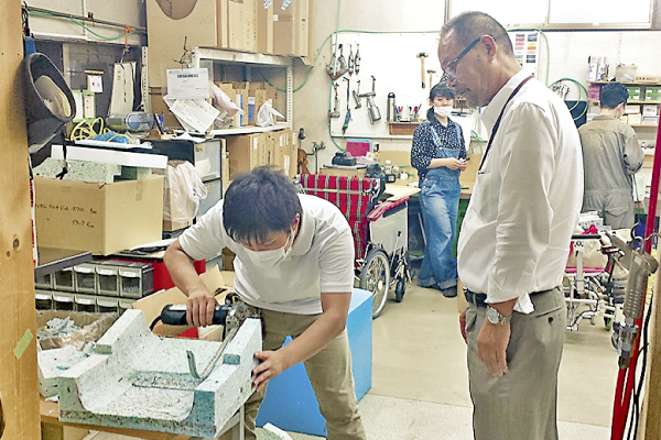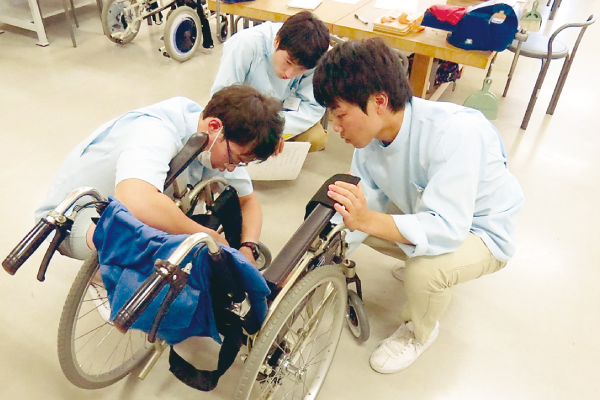 福祉用具・機器について、製造流通・利用者様への適合など関連する施設や企業で実習を行い、専門職としての心構えや態度を修得します。こうした福祉用具・機器に関する長期実習は、全国でも数少ない本学独自の取り組みです。