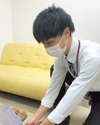 現在、私は店舗内で靴の販売・加工や中敷きの製作などを主に手がけています。また、病院へ出張して靴の加工や中敷きの製作も行っています。多くの種類の中からお客様にピッタリ適合する靴を提供するためには、お客様との会話や歩行などの動作を見る中でどれだけの情報を引き出せるかが重要になります。しかし、お客様の状態や使用目的に合致した靴を紹介できたとしても、必ずしもそれだけで買ってもらえるわけではありません。デザインや金額などの他にも考慮しなければならないポイントはたくさんあり、すべての点においてどのように折り合いをつけていけばいいのか、反省と実践の毎日です。