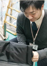 私は義肢装具士として、病院の整形外来にうかがい、疾患に対するコルセットやサポーターなどの装具の型採りから、でき上がった製品の患者様への装着までを行っています。装具を装着した患者様から、「楽になった」「ありがとう」などの言葉をかけていただく時が何よりも嬉しい瞬間です。