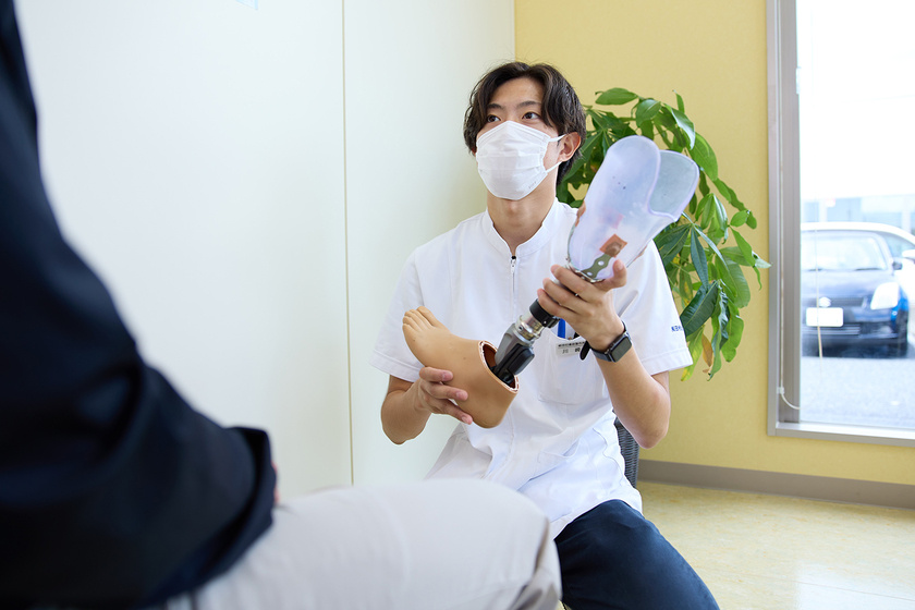 - 私たちが提供した製品(義肢装具)を使って、できなかったことができるようになる場面に立ち会えたことです。担当させていただいた義足の利用者様は、最初は一人で立ち上がることも困難でしたが、リハビリを通して歩行器を使って歩けるようになり、私自身も大きな喜びと達成感を感じました。