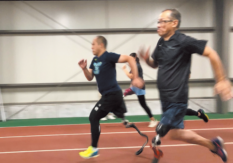 本学科では月に1回、障がい者陸上教室を開催しています。新潟県近隣より下肢切断者の方をお招きし、スポーツ用義足への交換、ストレッチ、ランニングのサポートを実施しています。それに加え、「NPO法人ギソクの図書館」の新潟拠点として指定されており、パラアスリートから走り方を直接教えていただけるイベントも開催しています。もちろん、高校生やお子様など一般の参加者の方も大歓迎です。