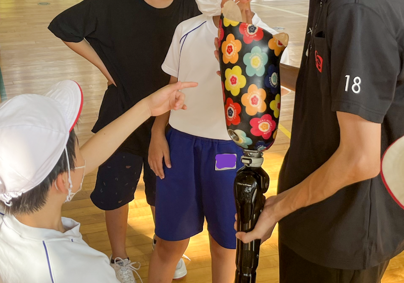 近年、「パラスポーツ」という言葉を良く耳にするようになりました。パラスポーツといっても数多くの種目があり、競技に取り組んでいる方の障害も様々です。そこで本学科では健康スポーツ学科と共同で、小学生を対象としたパラスポーツ教育活動を行っています。活動では実際にスポーツ用の車いすや義足を体験してもらい、普通の車いすとの違いや障害についてより理解してもらえるように取り組んでいます。