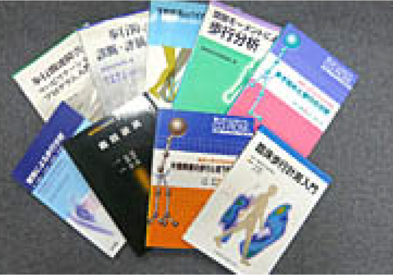 義肢装具自立支援学科の教授陣は、全国の大学で教科書的に使われている書籍や専門書の執筆を担当している教員が数多く存在します。また研究や臨床の現場でも使われているバイブル的な本もたくさん含まれています。その分野は動作解析・歩行分析・義肢装具・リハビリテーション医学・福祉機器など多岐にわたります。ぜひ教科書の著者から直接うける授業を期待してください。