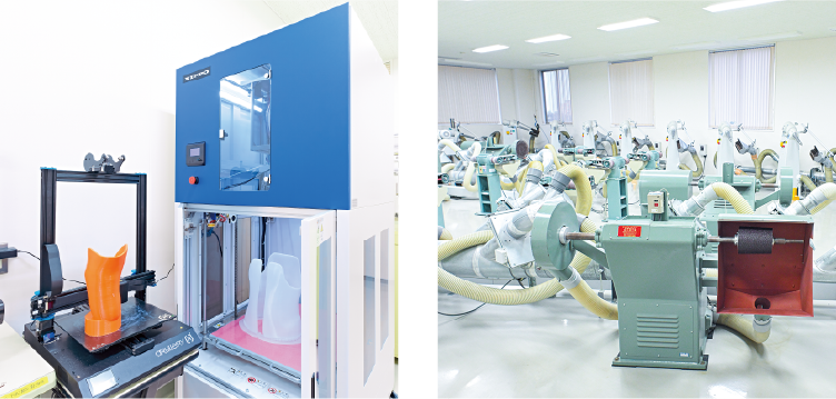 本学科では、研究施設や企業と協働で「3Dスキャナー・3Dプリンター」を用いた義肢装具製作支援システムに関する研究を進めています。対象者の身体を3Dスキャンで立体的にスキャンし、適合した義肢装具を3Dプリンターで出力(製作)するという工程で製作を行います。こうした最先端技術を義肢装具製作に応用することで、従来の人間の手によるものづくりにおける技術者の課題が改善されます。さらに製作時間の削減が期待され、対象者個々に適合した義肢装具をいち早く提供することが可能となります。