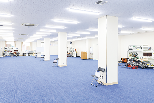 傷病者の観察・評価および救急救命活動全般に関する実習を行います。様々な状況を再現できる広さと多様な実習資器材を配置し、救急救命活動の基本技術を身につけます。