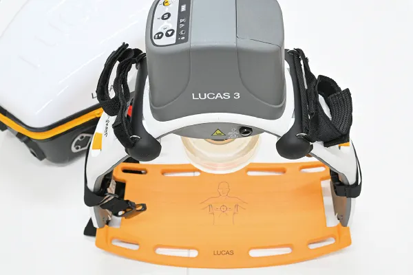 心肺停止状態の傷病者に使用します。自動式のため、絶え間ない胸骨圧迫による救命効果の向上や、救急隊員の負担軽減などが期待されます。