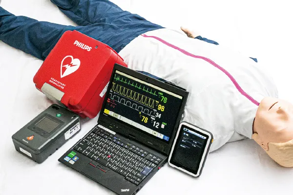 呼吸や脈拍、心電図などを表現できる人体シミュレーターです。各種設定により、様々な病態を再現することが可能で、救急救命処置のトレーニング器材としても使用できます。