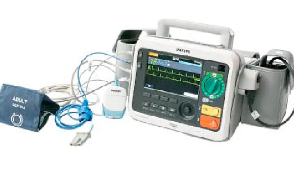 傷病者の呼吸や脈拍、血圧などの生命徴候を継続的に観察することができるモニターです。また、心停止時に必要な電気ショックを行うこともできます。