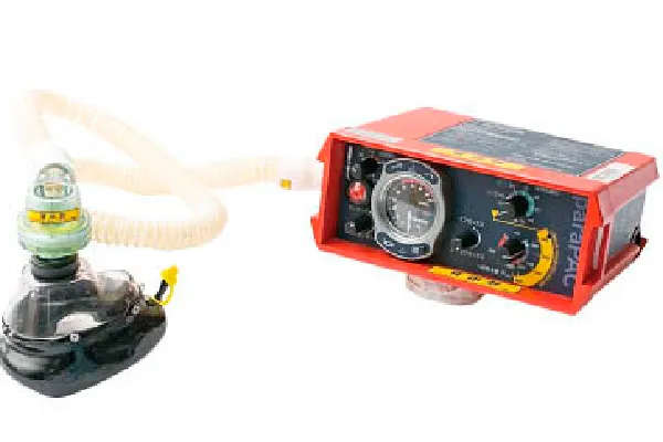 コンパクトな自動式人工呼吸器で、救急隊は主に呼吸機能が停止した傷病者に使用します。傷病者の呼吸状態に応じて様々な設定が可能です。