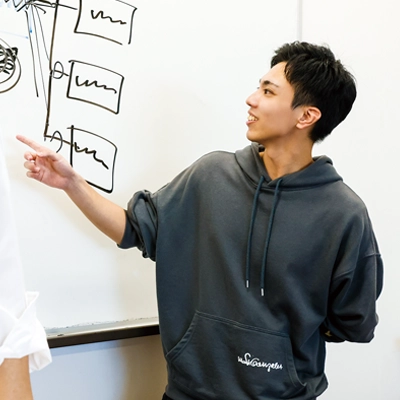 グループディスカションを公平かつ正確に評価するため、音源分離技術を用いて参加者の発言を自動で分析・評価できるシステムを開発しています。仲間と協力しながら進める中で、プログラミングスキルとコミュニケーション力が向上しました。