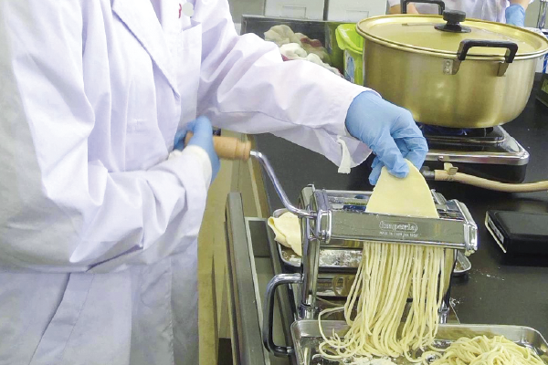 加工食品の製造や保存の原理、製品管理や包装、食品の規格や表示などについて学びます。また実際に授業の中で、豆腐やうどん、コンニャク、バター、ソーセージなどを作製し、その加工原理を学びます。