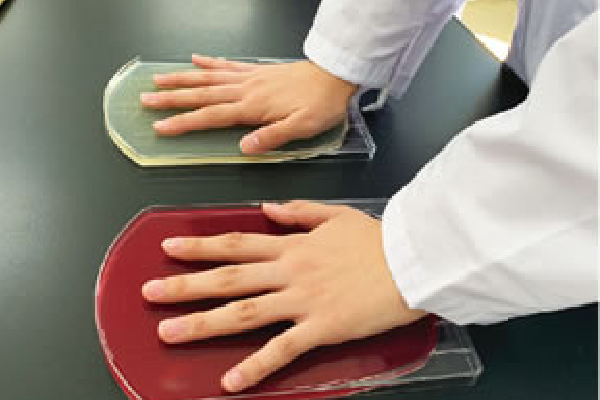 この科目では、「食品の安全」について学びます。食品添加物の検出や、調理に使用している油脂や生鮮食品の変質といった食品に関連するものから、身の回りにいる菌の培養や、顕微鏡を用いた食中毒菌の観察、菌の同定などを通して、科学的な幅広い理解を深めます。