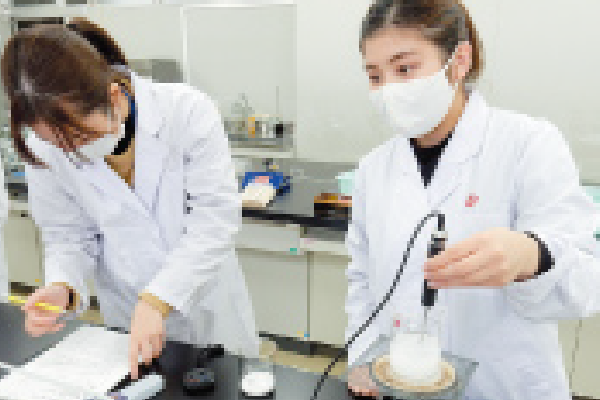 この科目では、食品中にどのような成分がどれくらいの量含まれているのかを実際に分析して調べます。実験を通して、食品中に含まれる成分の種類や量、食品成分の化学的性質、食品成分の分析方法を体験的に学び理解を深めることを目的としています。