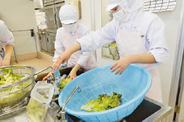 教育機関、給食センター、企業などの特定給食施設において、多くの方々に安全で美味しい給食を提供するための管理栄養士の役割を学びます。給食の経営と管理、栄養管理と栄養教育、食材管理、作業管理、衛生・安全管理など、幅広く学んでいきます。