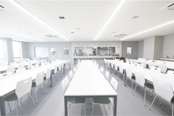 給食経営管理実習や調理学実習で調理した給食や料理を喫食する食堂です。給食経営管理実習室の様子を見学することもできます。
