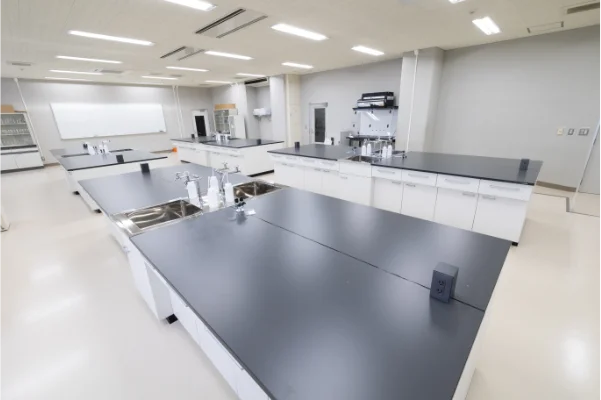管理栄養士として必要な、「人体の構造と機能及び疾病の成り立ち」、「食べ物と健康」の分野の知識を学ぶため、生化学実験、食品衛生学実験をこの実験室で行います。細胞内の機能や、身近な細菌の観察を通して、実践的、化学的評価を学びます。