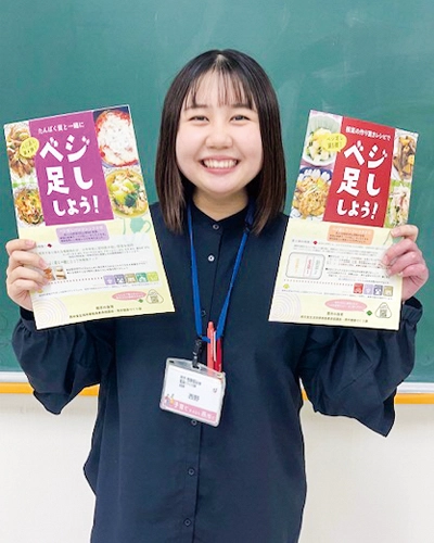 燕市の食育推進計画の目標値達成に向け、幅広い世代へ食育活動を展開しています。給食経営管理実習での経験を活かし、調理実習の企画運営や献立作成の指導を行い、時には健診の栄養指導も担当します。保健師や看護師など多職種と連携し、互いの専門知識を組み合わせ補い合って、市民の皆様の健康づくりをサポートする毎日です。