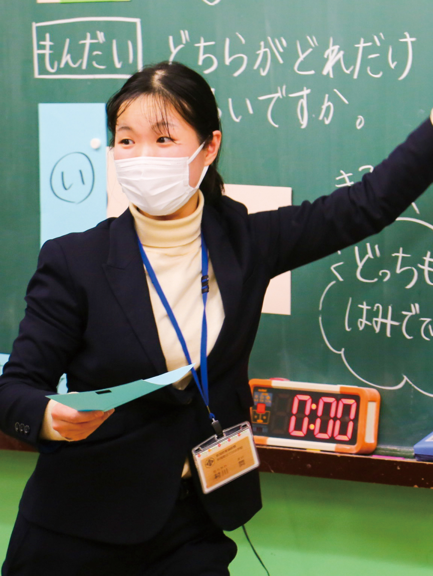 - 私は、これまで関わってくださったたくさんの先生方のおかげで、様々なことができる、分かるようになりました。この経験からできなかったことができる、分からなかったことが分かるようになることの嬉しさをたくさんの子どもたちに伝えたいと思ったのが小学校教諭になろうと思ったきっかけです。