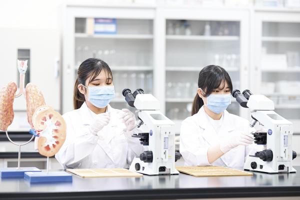 臨床検査技師の行う主な業務を中心に、検体検査(微生物・血液・尿など)、生理機能検査(呼吸・心電図・脳波など)や病理組織検査などを学びます。また、臨床実習Ⅰと連続して行うことで、臨床工学技士と臨床検査技師の業務内容の違いを理解し、臨床技術者として活躍するスキルを身につけます。
