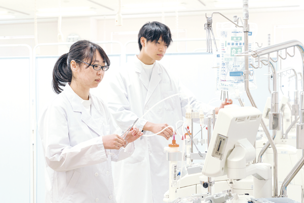 心臓、肺、腎臓などは、生命の維持に必要な臓器です。これらの臓器の代わりとなる機器が人工心肺装置、呼吸療法装置、血液浄化装置などの生体機能代行装置です。医学と工学の知識を活かしたこの科目では、臨床工学技士に必要となる高度医療機器の原理や操作、保守・点検方法について学びます。