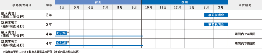 | 実習・演習系 | ●解剖学実習 ●電気・電子工学実習 ●生理検査学実習Ⅰ |