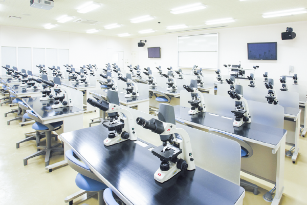 最新のデジタル顕微鏡を配置しています。各学生が1台を占有できる台数を備え、デジタル化された顕微鏡像を大型モニターに映写してより鮮明な画像データを分析しています。