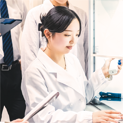 『消化器がんをなくしたい!』という究極の目的を遂行するため、新しい予防・検査・治療の3本柱を確立する研究をしています。具体的には、小動物に薬剤や造影剤を投与し、その生体反応をリアルタイムPCR法で評価する実験をメインで行っています。また、私自身、臨床技術学科でダブルライセンスを取得しています。ダブルライセンスを活かし、臨床工学系教員とチームを組み、医療機器デバイス使用下での生体反応をリアルタイムPCR法で評価しています。ダブルライセンスを持つことで、幅の広い実験・評価法に着手することができます。自分の疑問を自分の手で実験し、結果を出す研究の楽しさを感じてもらえるよう指導しています。