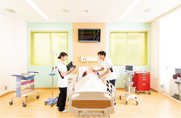 集中治療室や救急外来の見学実習を通し、生命の危機および集中的な治療を要する患者様とその家族への看護の実際を学びます。さらに、学内でシミュレーション演習を行い、集中治療や救急医療で必要な基本的な看護技術を修得します。
